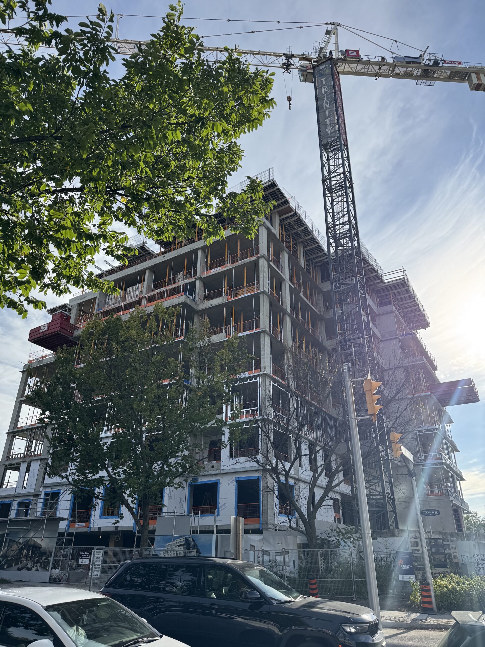 This new condo building, found at the intersection of Richmond Road and Island Park Drive, is being developed by Trinity Development Group. The nine-storey, mixed-use building will include ground-floor retail space, residential units, and sits above a preserved heritage gas station in Westboro.